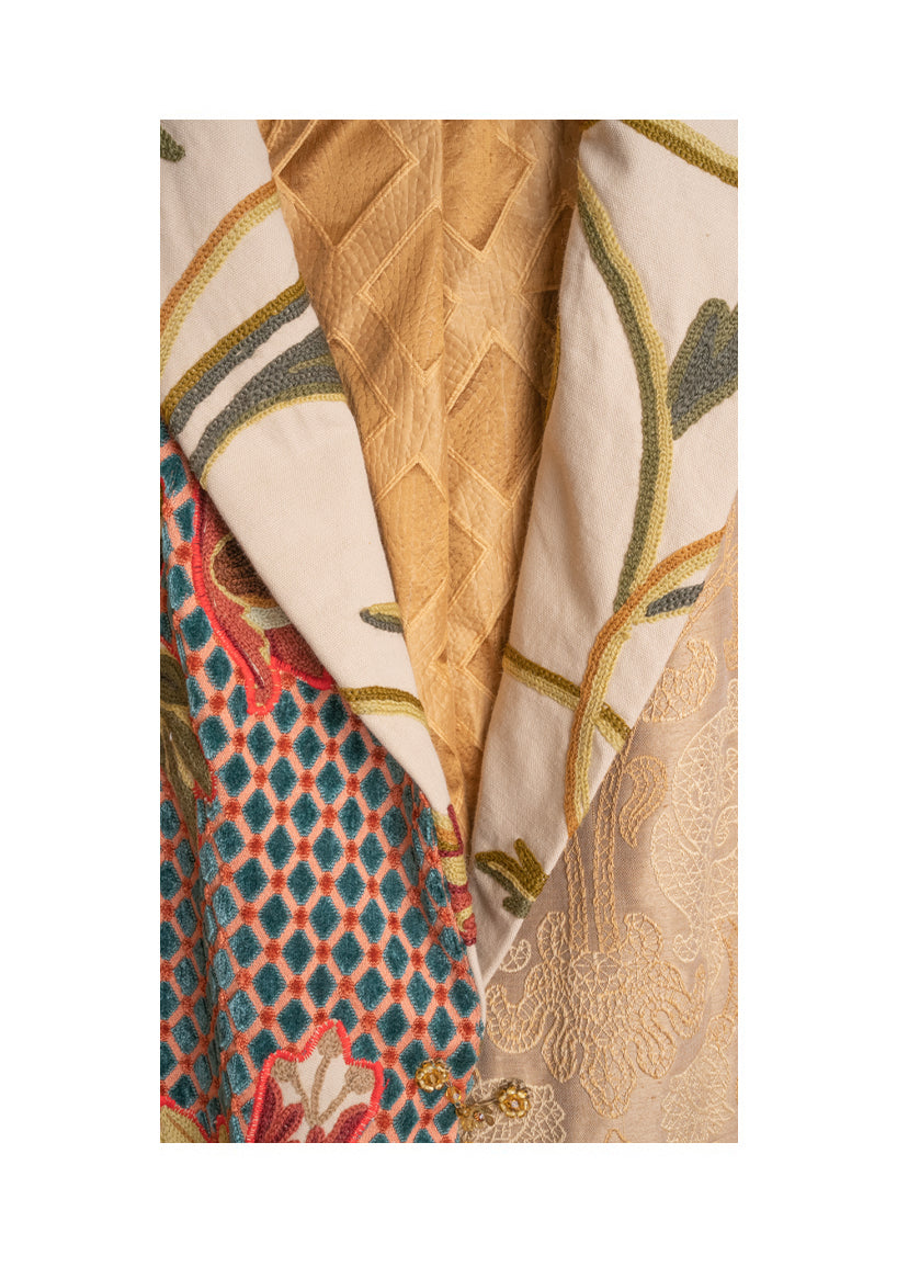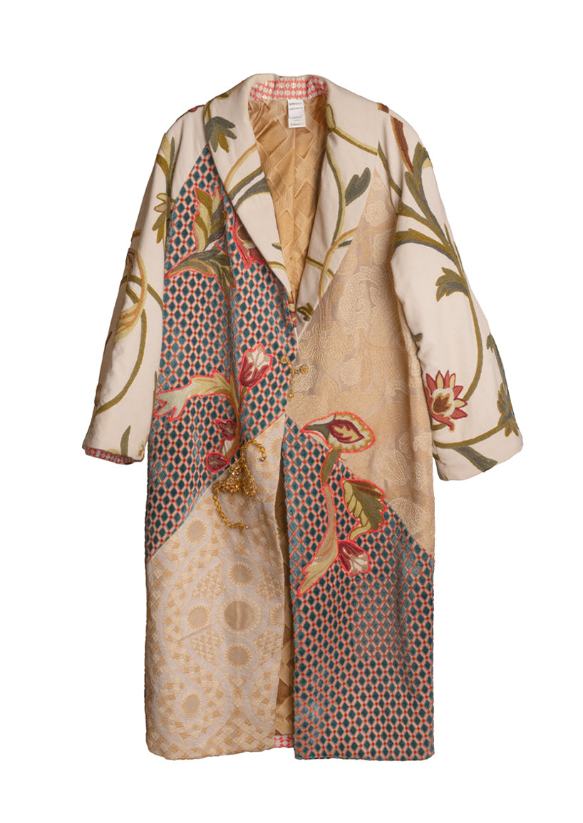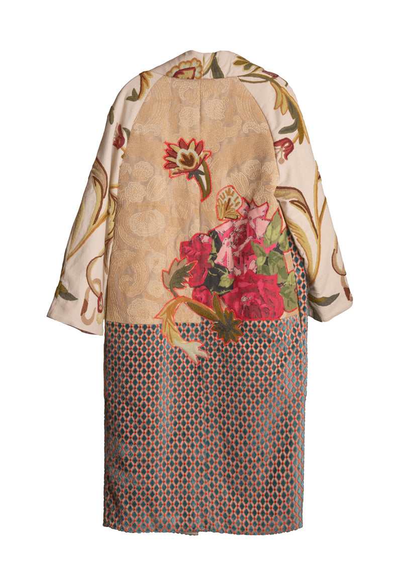 You can wear this Dolce Vita coat throughout the season, with its textured diamond pattern complemented by a floral pattern on the collar and sleeves. Floral appliques for a finishing touch. So artistic. Two side pockets.